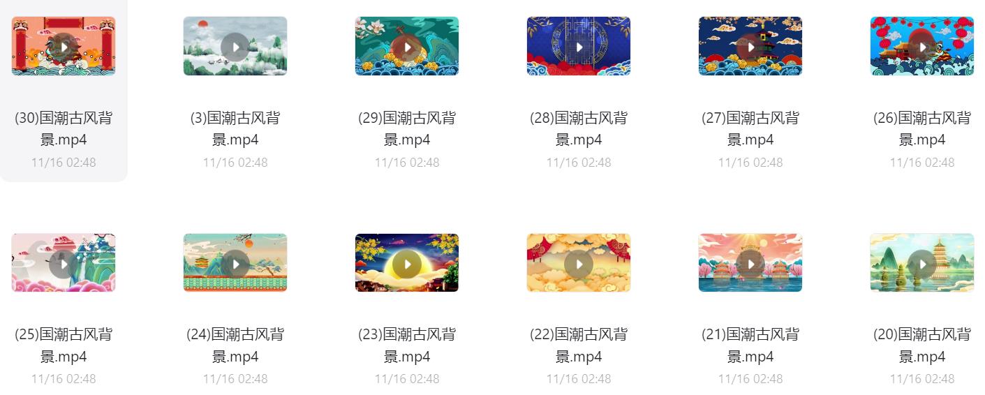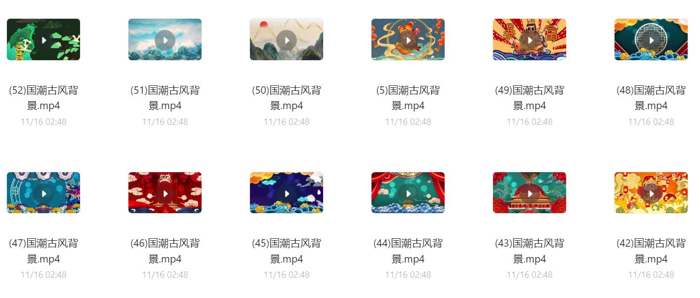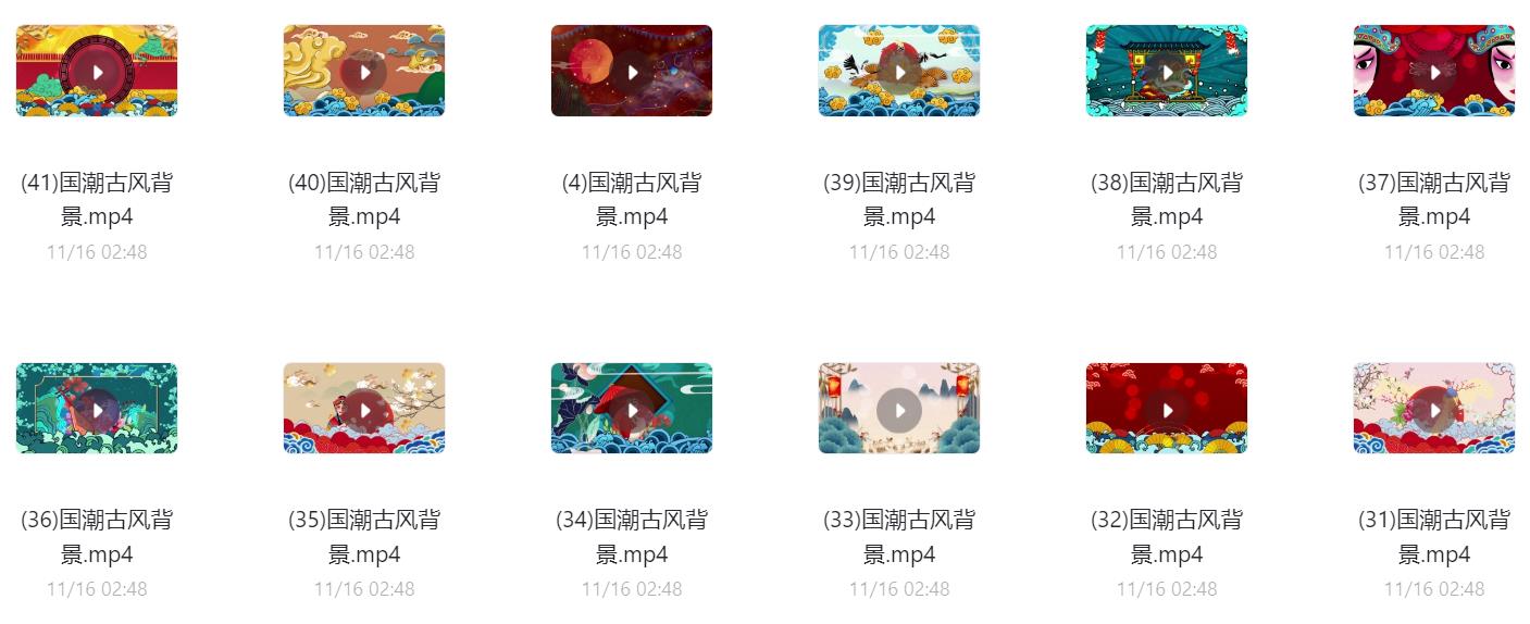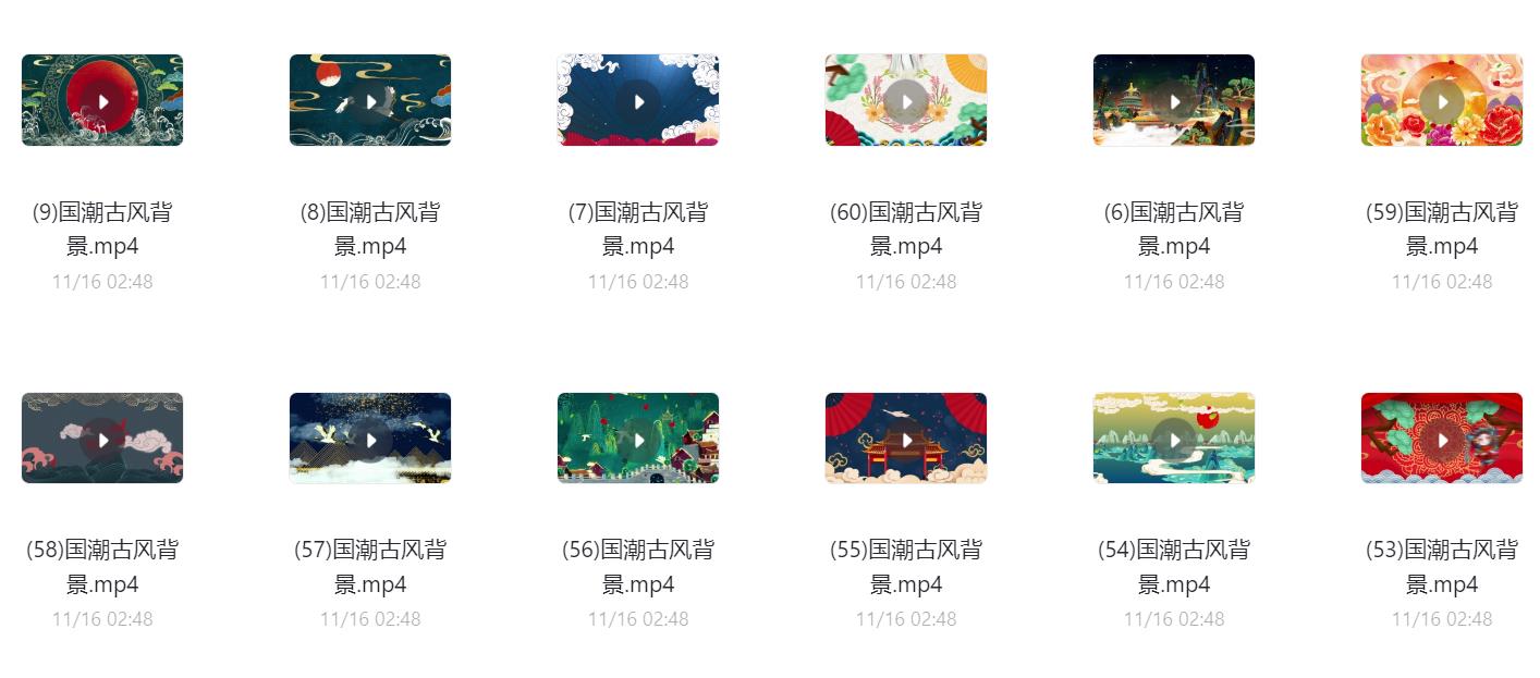 60款国潮古风背景视频素材,阿里云盘和夸克网盘资源下载。 可用于古风山水、古风祥云、国潮祥云等动态背景制作或大屏显示,超清无水印。 声明:本站所有文章,如无特殊说明或标注,均为本站原创发布。任何个人或组织,在未征得本站同意时,禁止复制、盗用、采集、发布本站内容到任何网站、书籍等各类媒体平台。如若本站内容侵犯了原著者的合法权益,可联系我们进行处理。