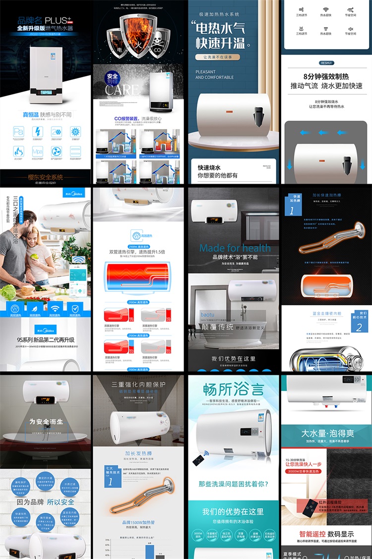 44款厨卫电器详情页模板PSD电商详情页热水器净水器分层设计素材 声明:本站所有文章,如无特殊说明或标注,均为本站原创发布。任何个人或组织,在未征得本站同意时,禁止复制、盗用、采集、发布本站内容到任何网站、书籍等各类媒体平台。如若本站内容侵犯了原著者的合法权益,可联系我们进行处理。