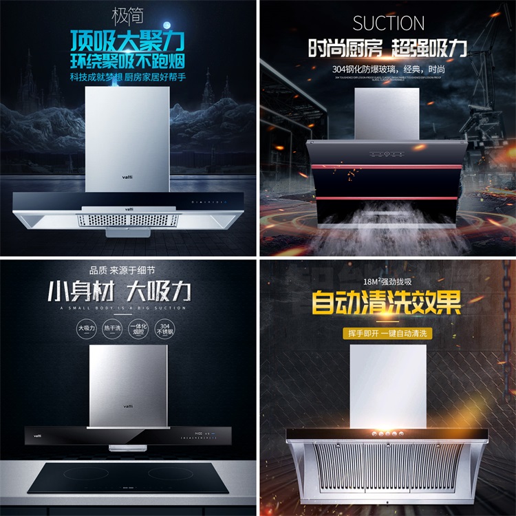 24款电商主图PSD分层素材抽油烟机主图燃气灶煤气灶主图设计稿 声明:本站所有文章,如无特殊说明或标注,均为本站原创发布。任何个人或组织,在未征得本站同意时,禁止复制、盗用、采集、发布本站内容到任何网站、书籍等各类媒体平台。如若本站内容侵犯了原著者的合法权益,可联系我们进行处理。