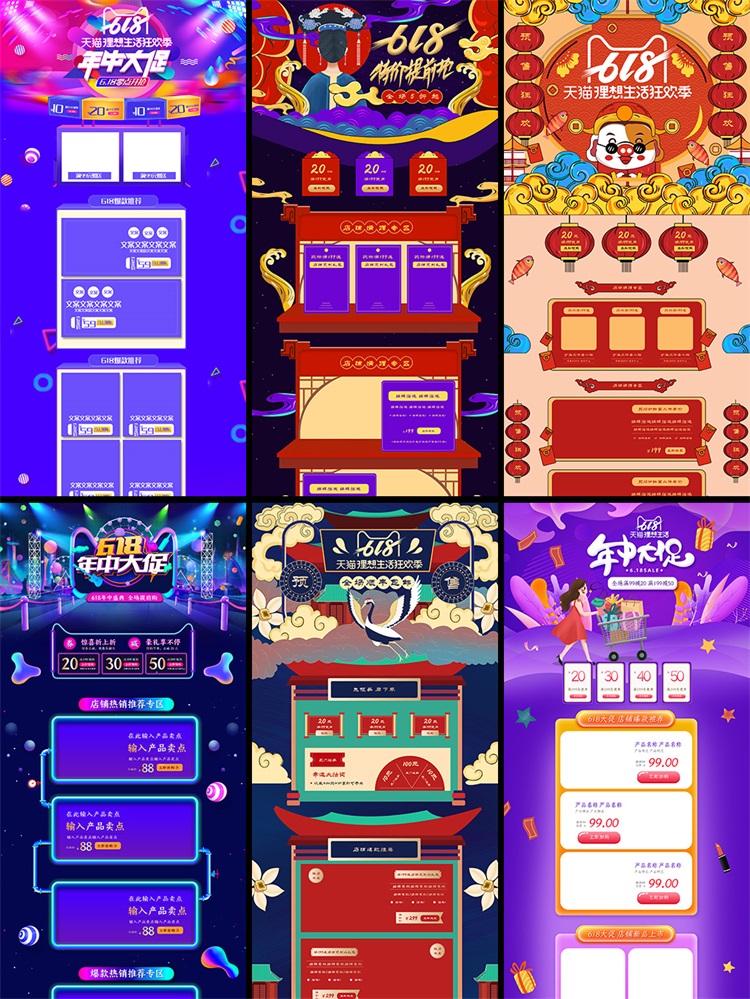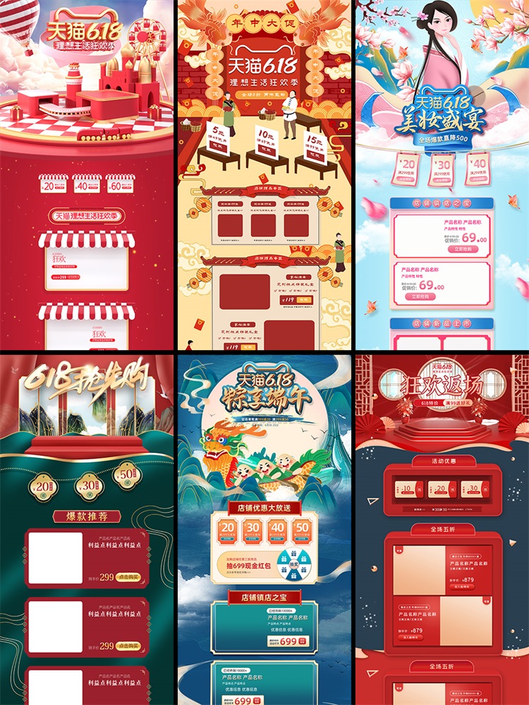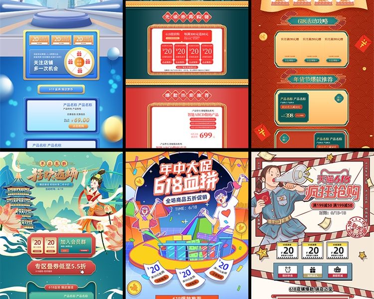 81款618电商促销首页设计稿淘宝天猫阿里店铺首页设计PSD分层素材