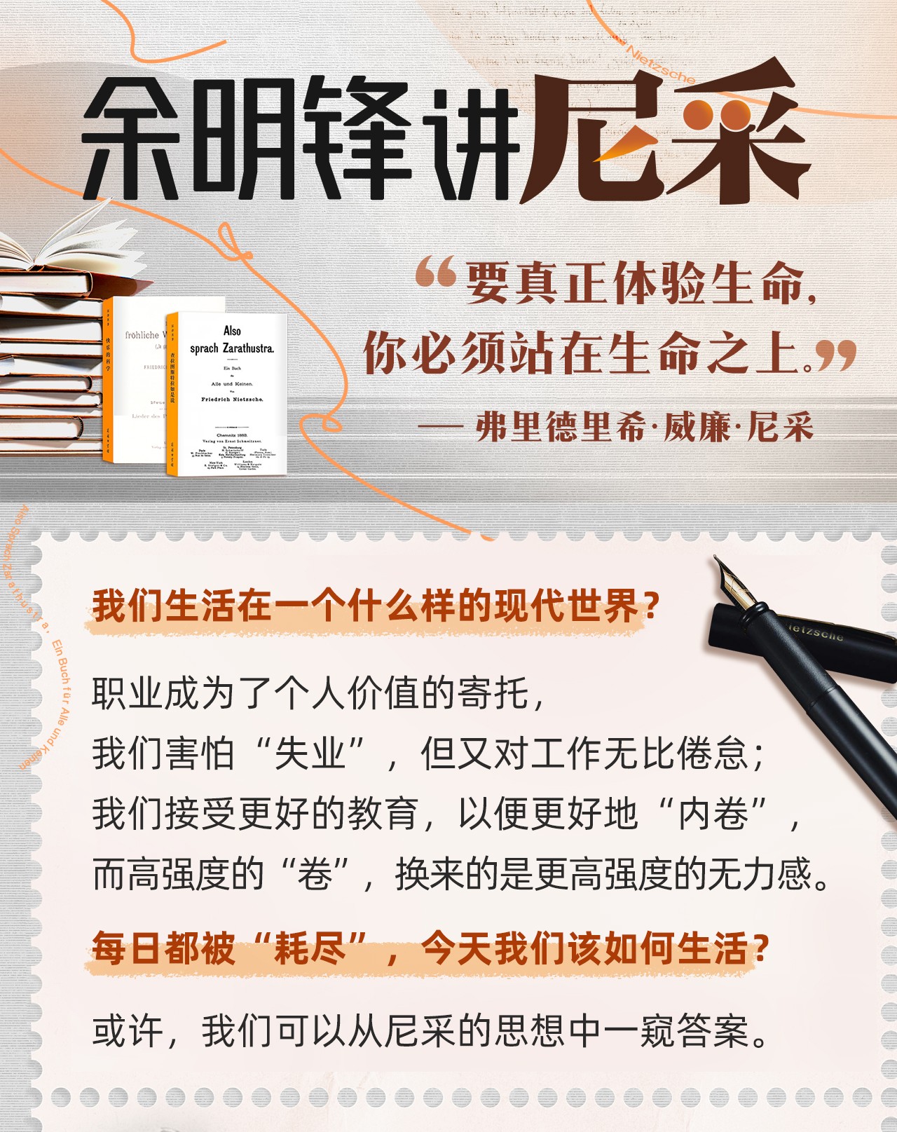 余明锋讲尼采:现代社会的生存哲学, 由尼采思想分析当下精神困境,探讨今天我们该如何生活。 免费下载地址 此处内容已经被作者隐藏,请输入验证码查看内容验证码: 微信扫描右侧二维码,关注本站微信公众号【光头老蔡】, 回复【验证码】,获取验证码,然后提交查看隐藏内容! 声明:本站所有文章,如无特殊说明或标注,均为本站原创发布。任何个人或组织,在未征得本站同意时,禁止复制、盗用、采集、发布本站内容到任何网站、书籍等各类媒体平台。如若本站内容侵犯了原著者的合法权益,可联系我们进行处理。