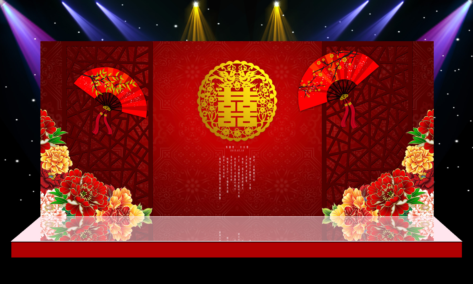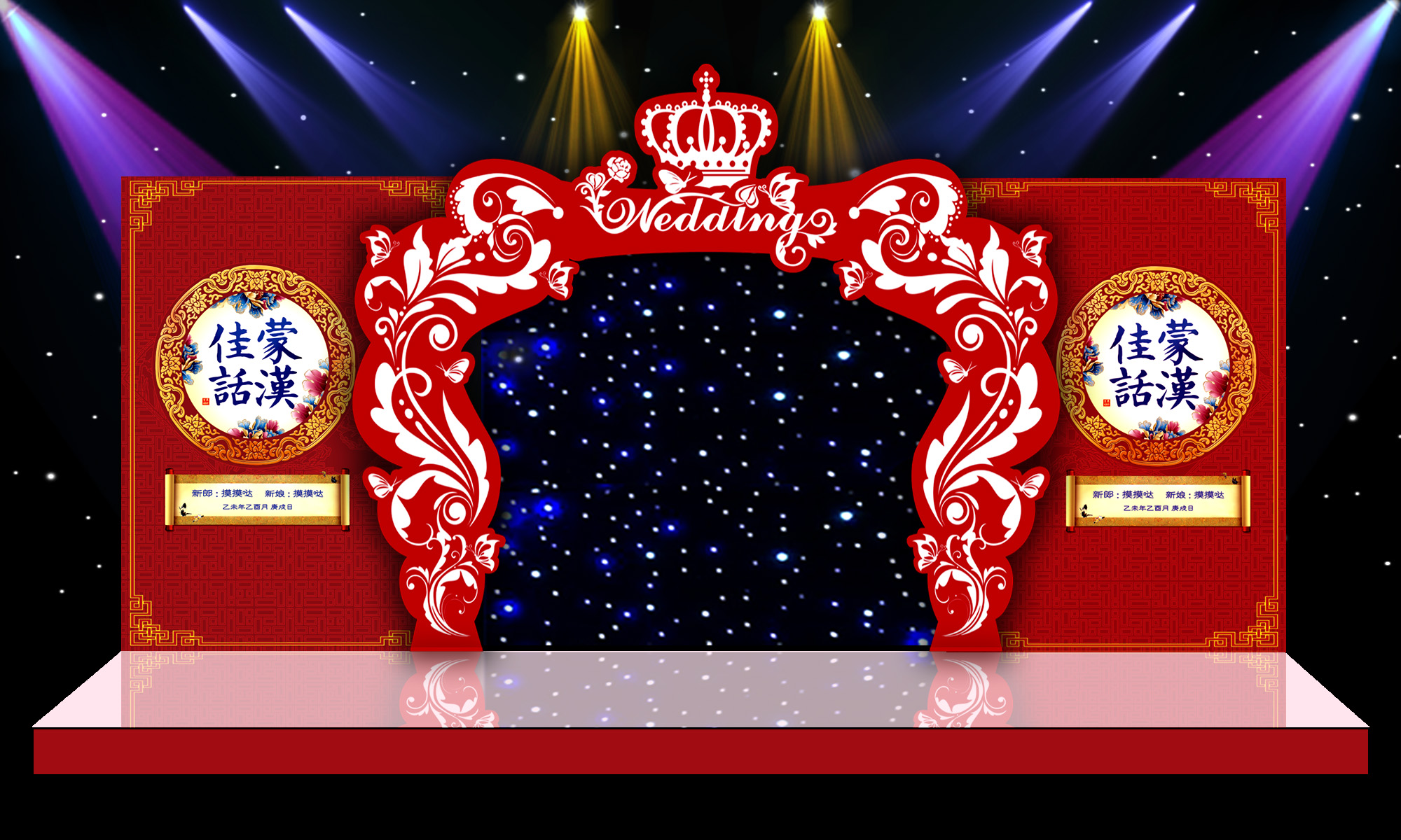 这套素材非常不错,是专门用于婚礼舞台设计,婚礼现场布置的PSD分层素材,每个素材都包含了正面、侧面、背景等各个部位的原版设计稿。一共有42套
