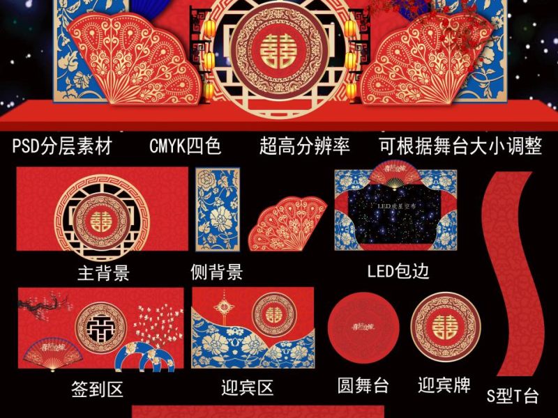 包括PSD源文件与预览图,以及婚礼布置现场几千张可用于直接设计的实拍效果图。