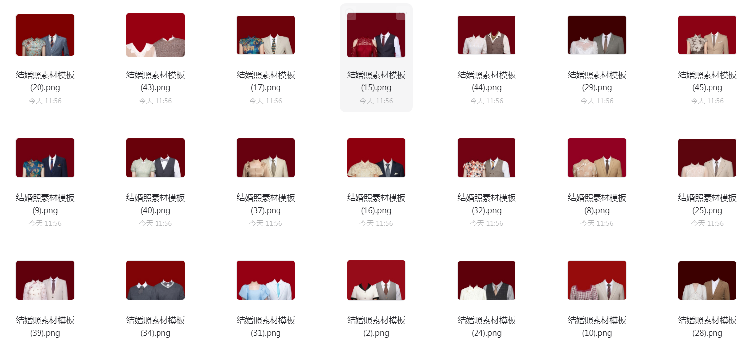 最美证件照精修课程附赠50套结婚照免抠PNG素材文件列表